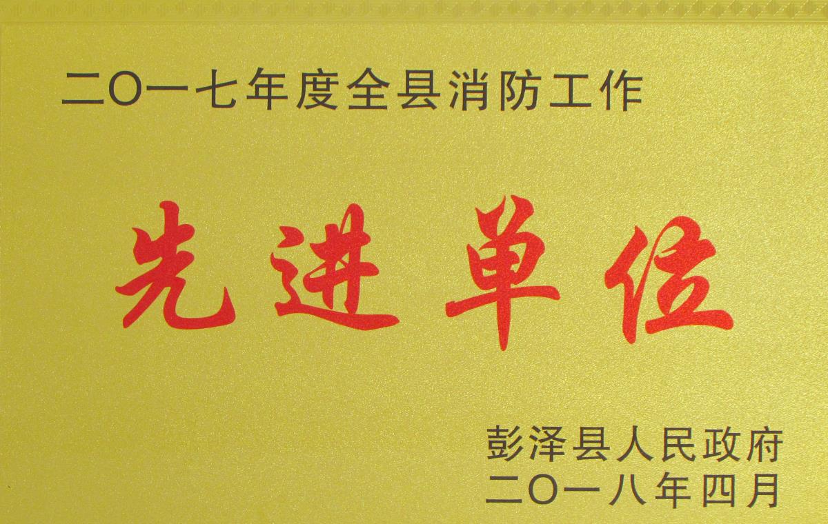 | 2018年度納稅貢獻(xiàn)獎(jiǎng) | 2017年度彭澤縣消防先進(jìn)單位 |